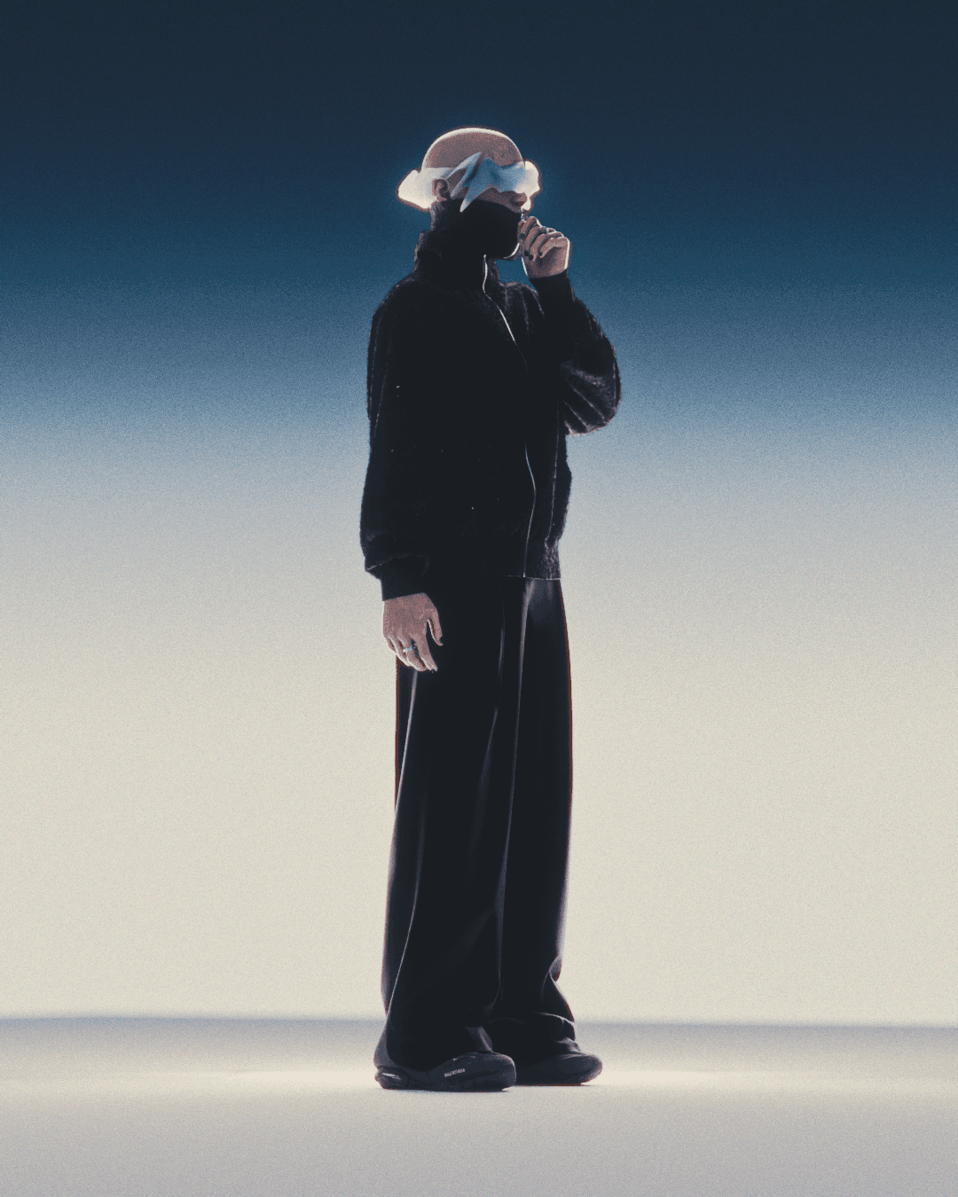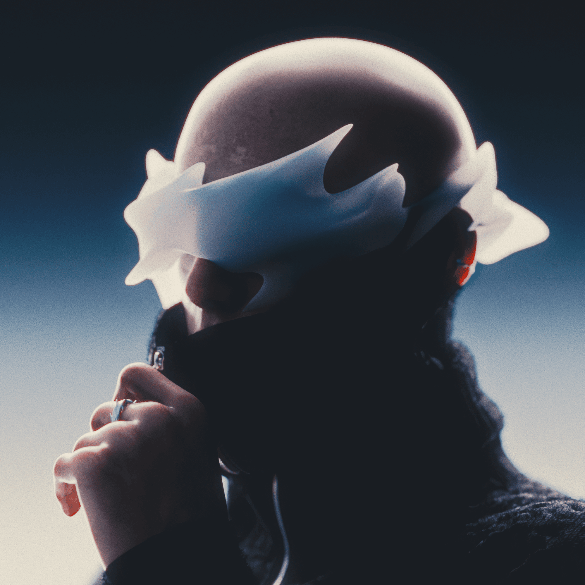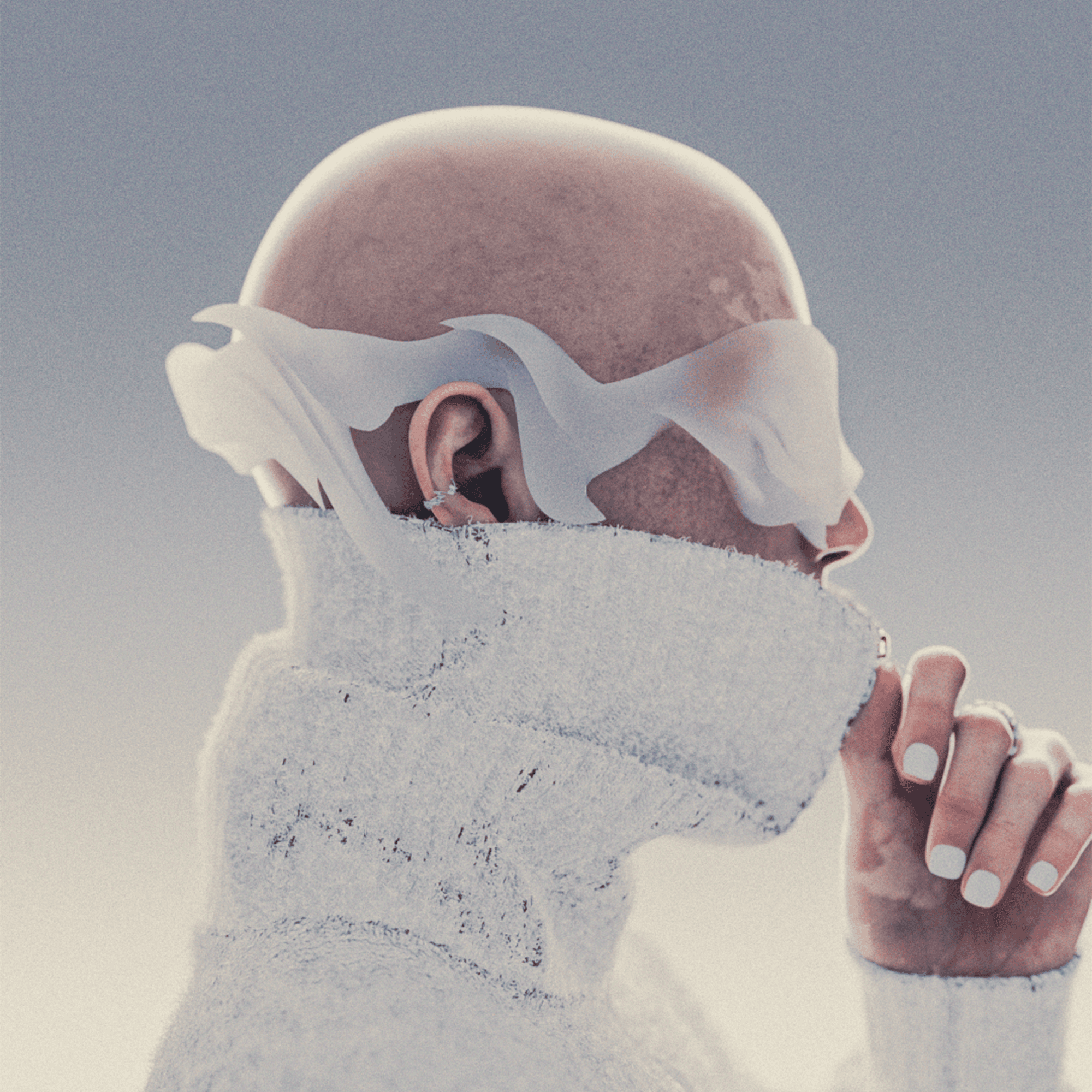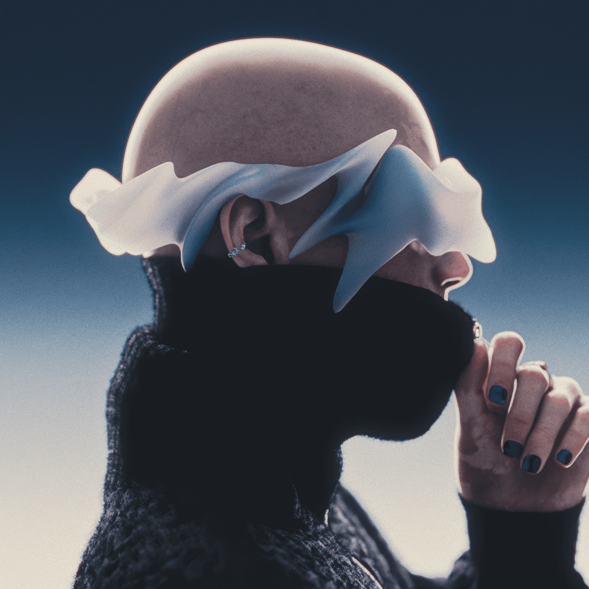 Ambivalence visualizes a dynamic duality, merging the fluid, boundless shapes of the ocean with the rigid, peaked structures of the mountains. The figure utilizes this environmental synthesis as a mask to both hide and express their underlying identity.