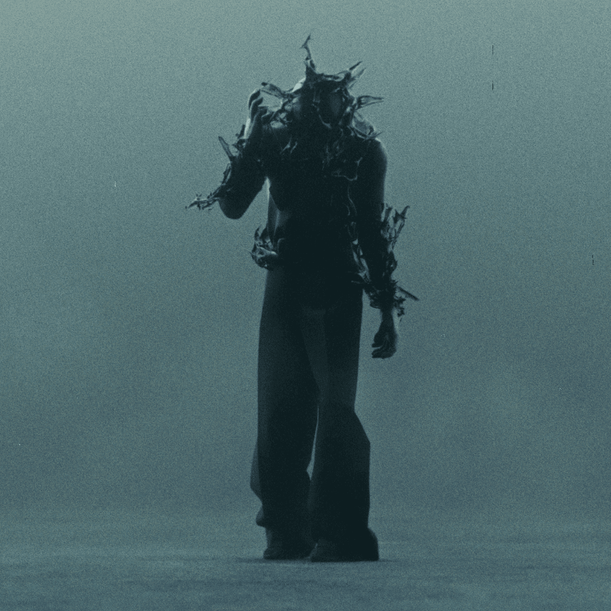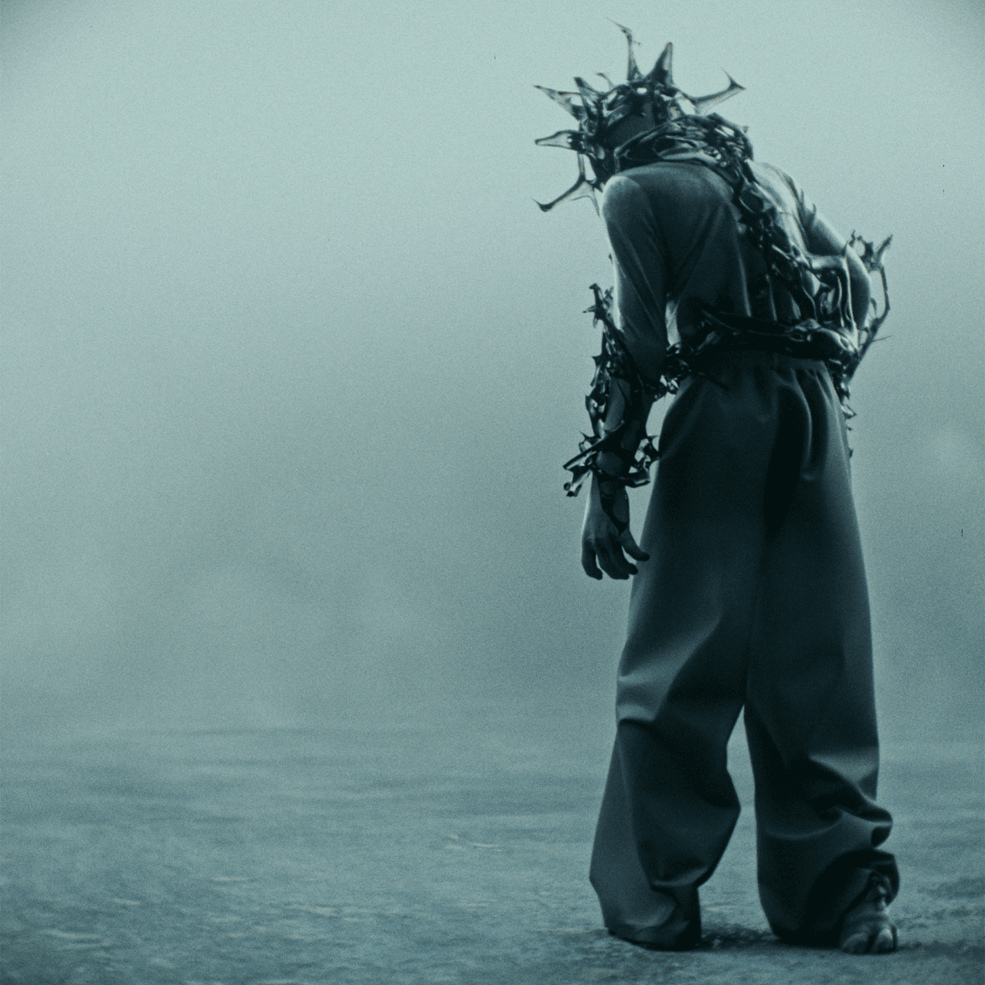 Encaged depicts the masculine counterpoint to Exiled, represented as a dark and withdrawn figure burdened by the consuming weight of time.